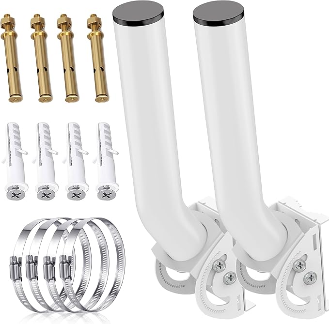 完全なアクセサリー: この無線ブリッジポールおよび壁取り付けブラケットには、レンガ壁に取り付けるための拡張ネジ、木製壁に取り付けるための4つのネジ、アンテナポールにJマウントブラケットを固定するための2つのアメリカスタイルのホースクランプが含まれており、簡単な取り付けのために必要なすべてのコンポーネントを提供します。