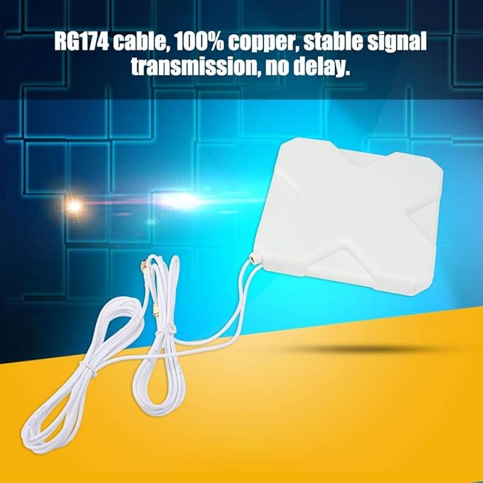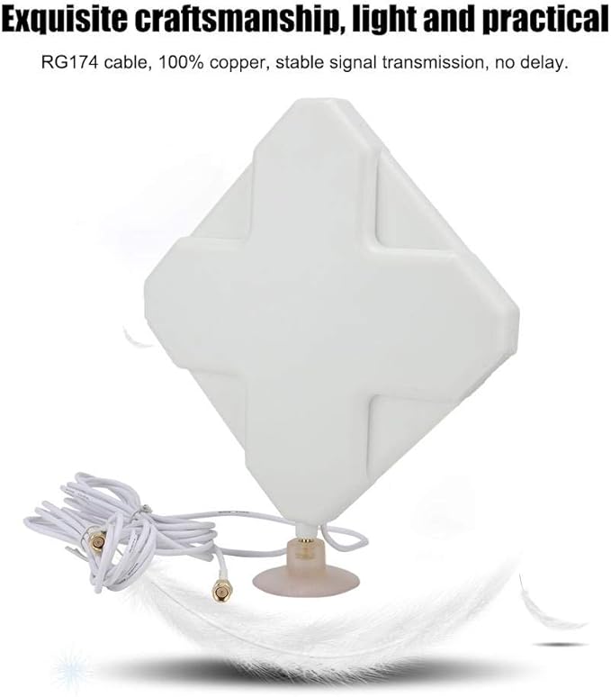 【商品仕様】材質:ABS。サイズ:約15 15 2cm / 5.91 5.91 0.79インチ。周波数範囲:791-821MHz / 832-862MHz / 1710-1785MHz / 1805-1880MHz / 2500-2570MHz / 2620-2690MHz。ゲイン:35dBi。出力電力:最大10W。入力インピーダンス:50Ω。吸盤:5cm / 1.97inch直径。ケーブル長:約1.9m / 6.23ft。ケーブルの種類:RG174、100%銅。コネクタ:SMA。SWR:≦2.5。偏光タイプ:垂直。放射線:全方向。