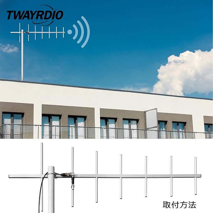 TWAYRDIO 7エレメント 八木アンテナ UHFバンド(400-470MHz) 3分割式 ハイゲイン 高利得 MJ型コネクタ U型ボルト付 トランシーバー用 無線機用 TW-YG07