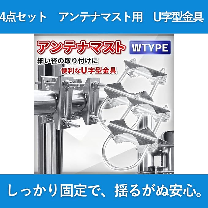 U字型金具:U字型の金具により、アンテナの取り付けが簡単で、設置時にしっかりと安定します。