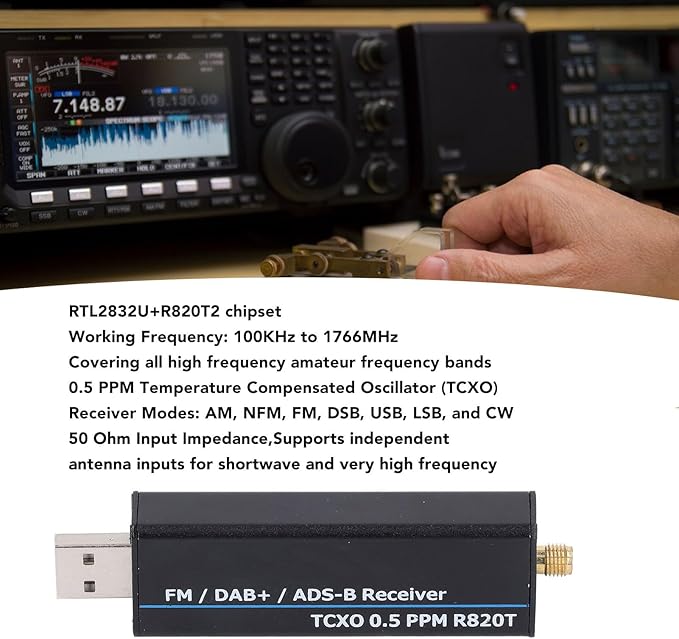 広範囲対応:RTL2832UとR820T2チップセットを搭載したこのRTL SDRレシーバーは、100KHz~1766MHzの周波数範囲で動作し、あらゆる高周波アマチュアバンドをカバーします。