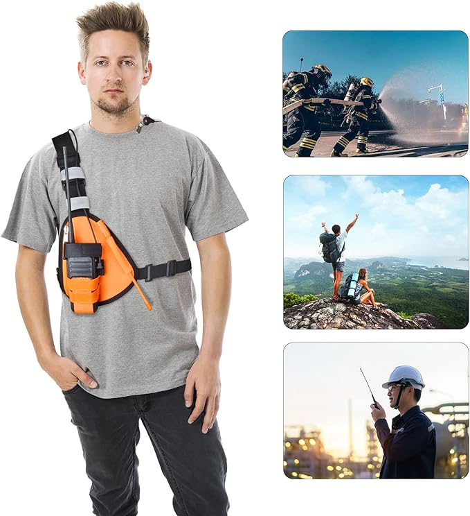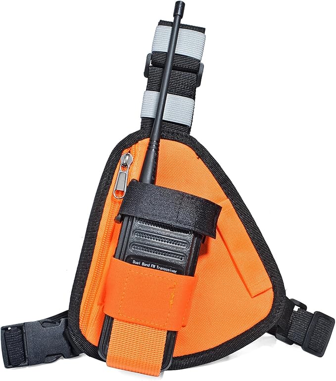 [YNIBST]多用途 無線機チェストリグ ハンディ無線機用 三角型 チェストバッグ 小型ラジオホルスター 無線機・アンテナ保護 オレンジ