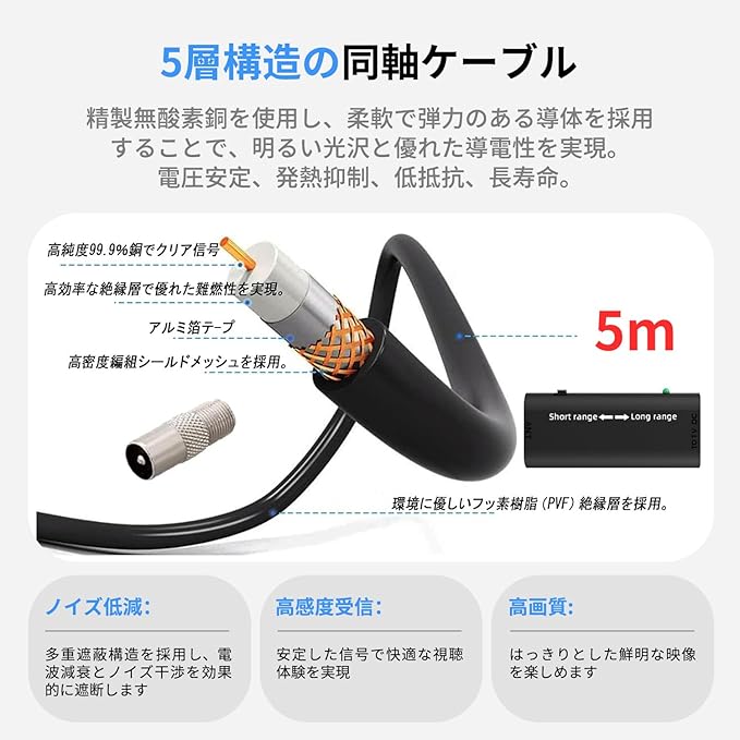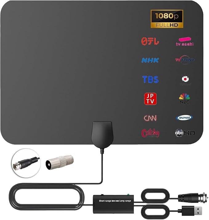 【2026年新型】室内アンテナ 地デジアンテナ ブースター 内蔵 高感度 高性能4K HD TV 600KM受信範囲無料視聴 5Mケーブル F型 UHF VHF兼容 车 户外・室内用 防水 USB式給電 設置簡単 日本語取説書付