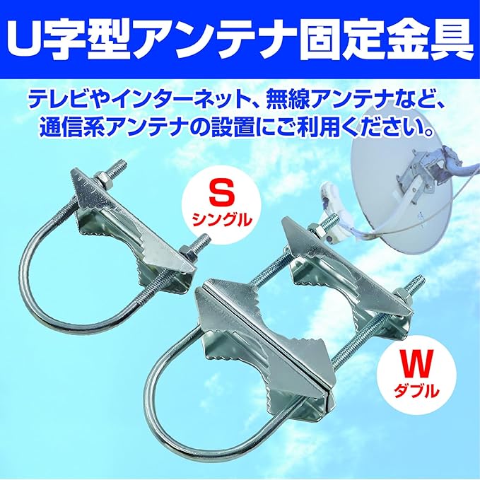 アンテナの設置に!アンテナマストクランプ、マスト垂直固定金具、アンテナ固定金具のセットです。テレビやインターネット、無線アンテナなど、通信系アンテナの設置にご利用ください。