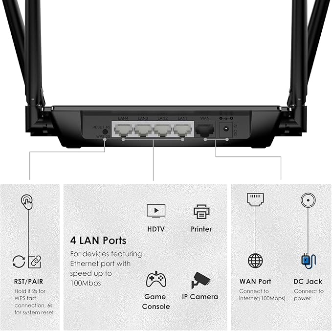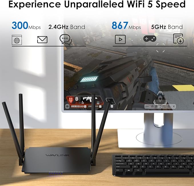 WAVLINK AC1200 wifiルーター 無線lanルーター1200Mbps、5GHz+2.4GHz デュアルバンド WiFi 5 ルーター、4x5dBiアンテナ、10/100Mbps WAN/LAN、ルーター/AP/リピーターモードをサポート、ビームフォーミング技術【PS5 / iPhone 14 / Nintendo Switch メーカー動作確認済み】