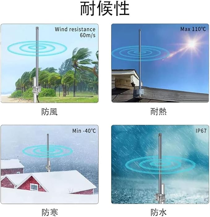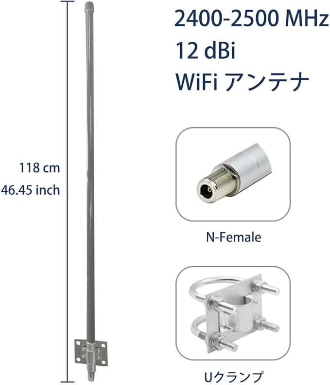 2.4GHz モバイル通信 12dbi 高利得 WiFiアンテナ 屋外 IP67 耐候性 2400-2500MHz 無指向性 BSアンテナ 802.11b/g/n 対応