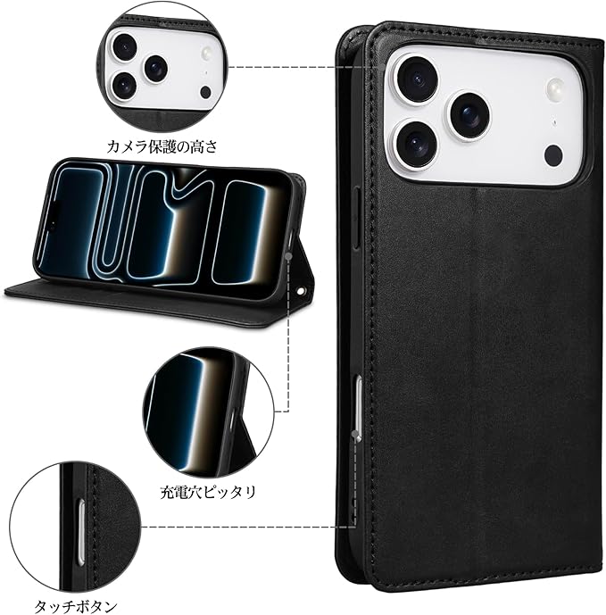 カード収納:アイフォン 17 プロマックス ケース内側には便利なカードポケットが付属しており、名刺やクレジットカード、IDカードを収納可能です。ご注意:収納枚数やカードの厚みによっては、蓋が閉まらない場合がありますのでご了承ください。