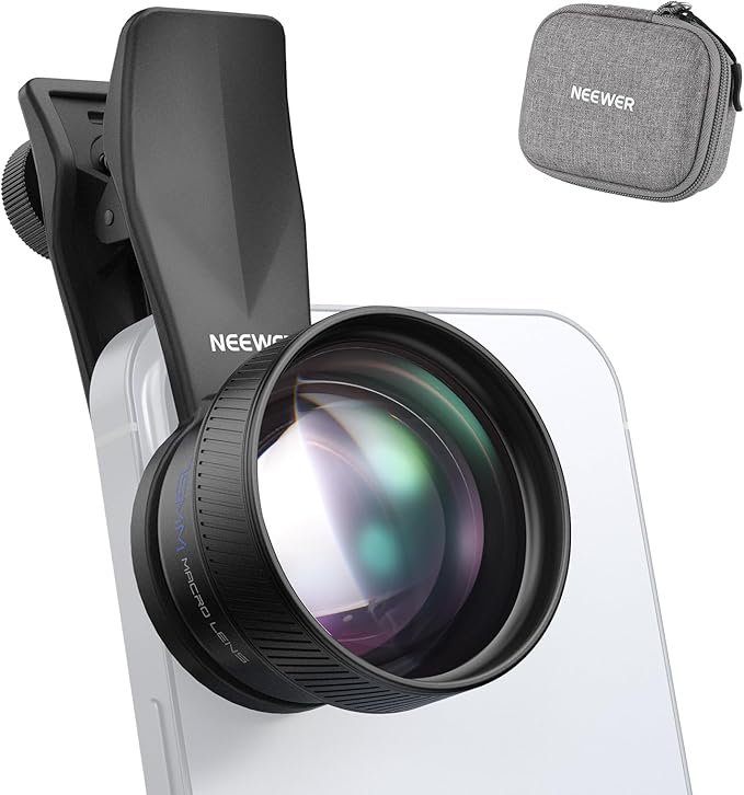 NEEWER 75mmスマホレンズ マクロスマホカメラレンズ 17mmネジ付きレンズクリップ 10倍倍率 5群5枚レンズ バックプレート/スマホケージ/ケース付き モバイル写真撮影用 コンパチブル iPhone 17シリーズ/16 Pro Max/15/14/13 Pro Max/Android/Galaxy S25 Ultra LS-73