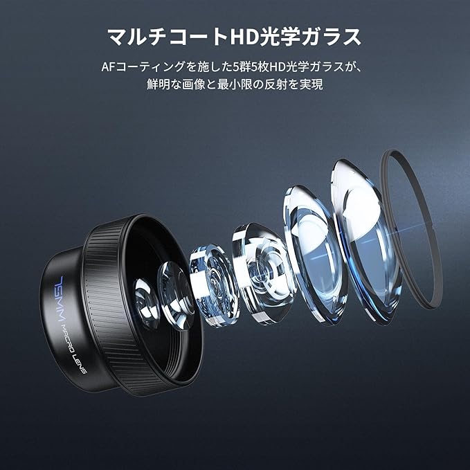 【優れた光学構造】HD光学ガラスは、5群5枚レンズ構成で、レンズのグレア、反射、ゴーストを最小限に抑え、優れた透明度を実現します。多重保護コーティングにより、水、指紋、傷に強いです。コンテンツクリエイターやインフルエンサーにとってにとって必要なアクセサリーキットとして、レンズアタッチメントとして最適です。クリーニングクロスも付属しています。