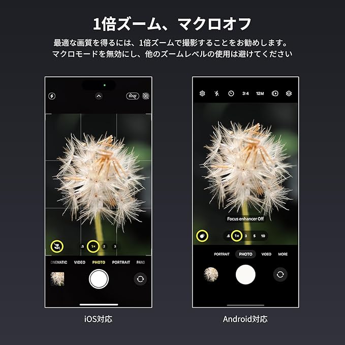【軽量&頑丈】軽量レンズアタッチメントは、アルミ合金製シェルを採用しています。ご注意: ご使用前に、メインカメラと隣接するカメラを清掃してください。ケラレが発生した場合は、レンズを締め、カメラズームを1.1倍以上に設定してください。
