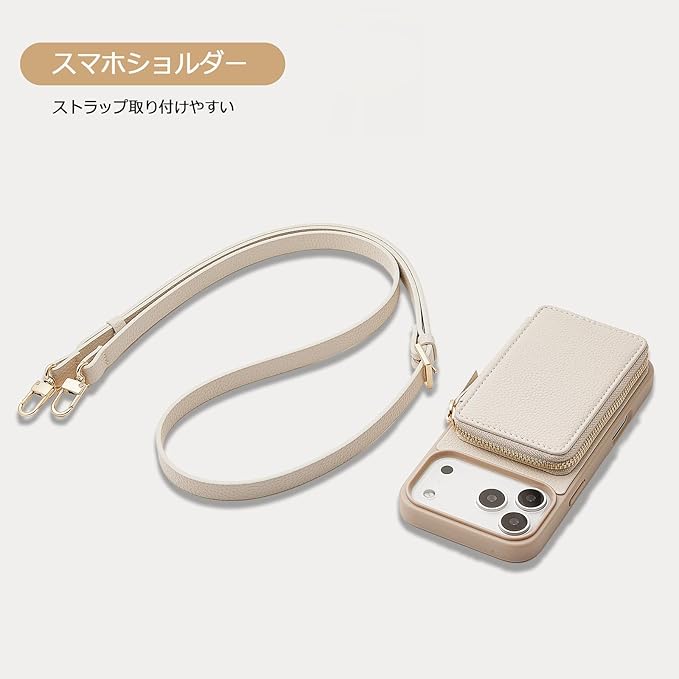 iPhone 17 pro max対応ケース6.9 ZVE iphone17promax 背面手帳型ケースカード収納 アイフォン17promaxケースショルダー ICカード入れ アイフォン17promax財布付きケース あいふぉん17promax適応ケース 6.9インチ(ホワイト)