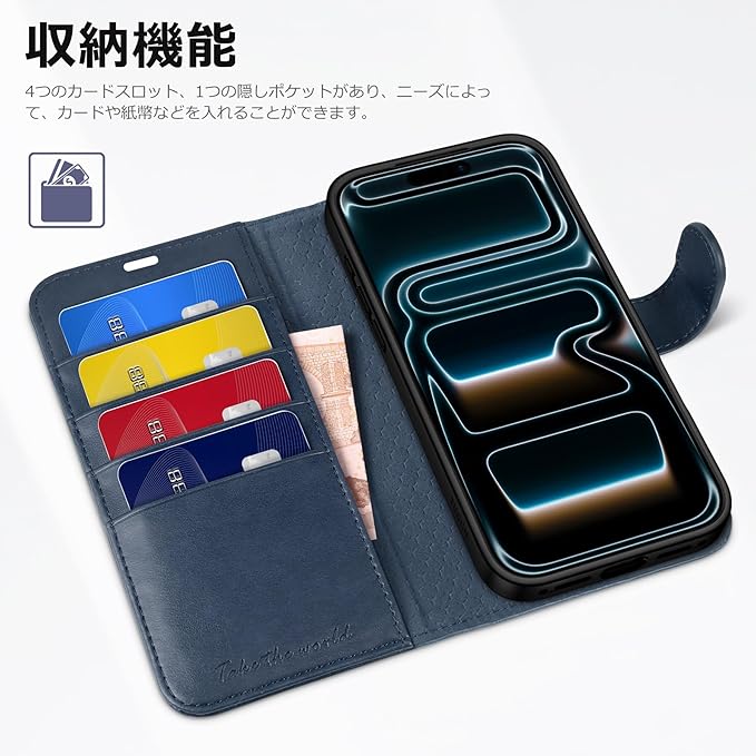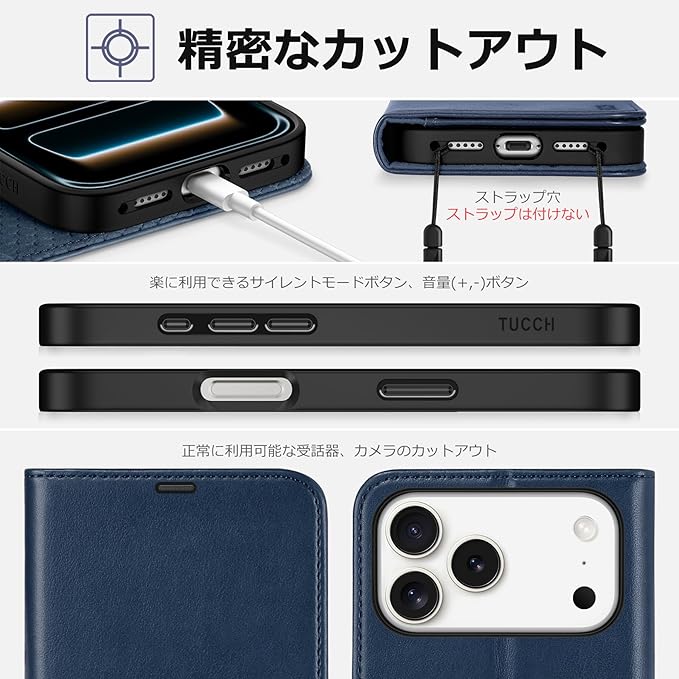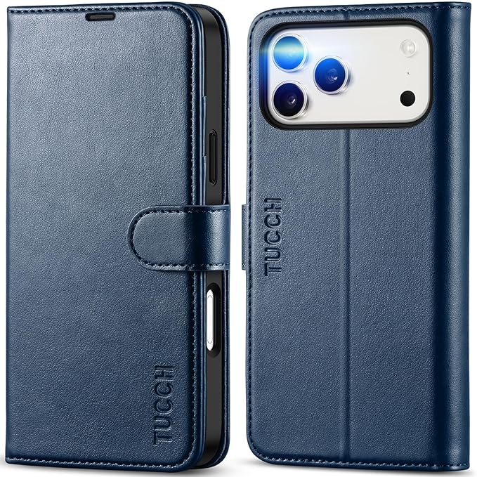 TUCCH iphone 17 Pro Max 対応 ケース手帳型 6.9インチ 4つカードポケット付き ストラップホール 横置きスタンド機能 RFIDブロッキングPU合皮 TPU素材 衝撃吸収 全面保護 マグネット式 あいふぉん17プロマックス対応 携帯ケース 2025年発売 5G ダークブルー