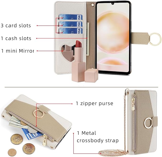 for iPhone 17 Pro Max ケース 手帳型 ショルダー for iPhone 17プロ マックス 財布型 カバー 肩掛け 斜めがけ 化粧鏡付き 女性 おしゃれ ロングストラップ ジッパー小銭入れ カード収納 横置き 上質な手触り 耐汚れ気質 肌感レザー 防指紋 耐久性 贈り物 COCOCLOUD ホワイト