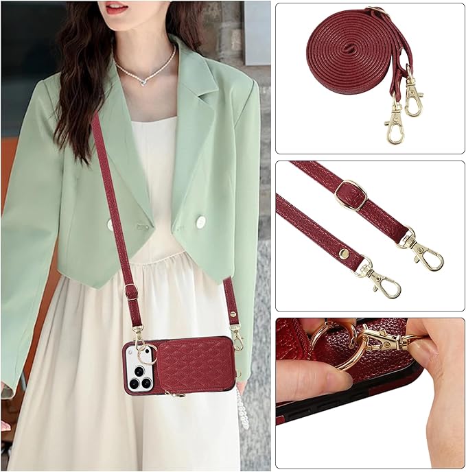 【対応機種】『iPhone 17 Pro Max(約6.9インチ)』対応にショルダーケースです。キルティング加工で可愛く、おしゃれな金具つき、革のような風合い、肩が痛くなりにくい太め 、大人っぽいデザインの人気Rosbtibスマホケースです。