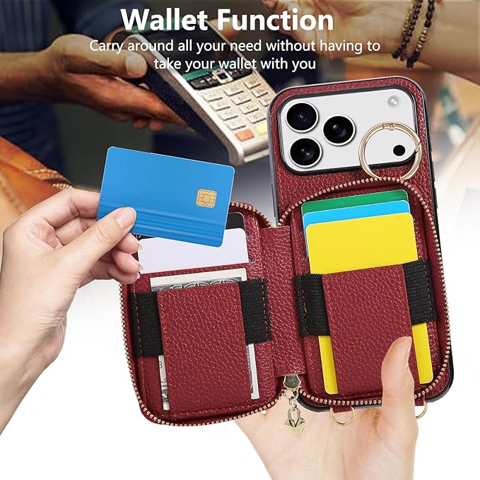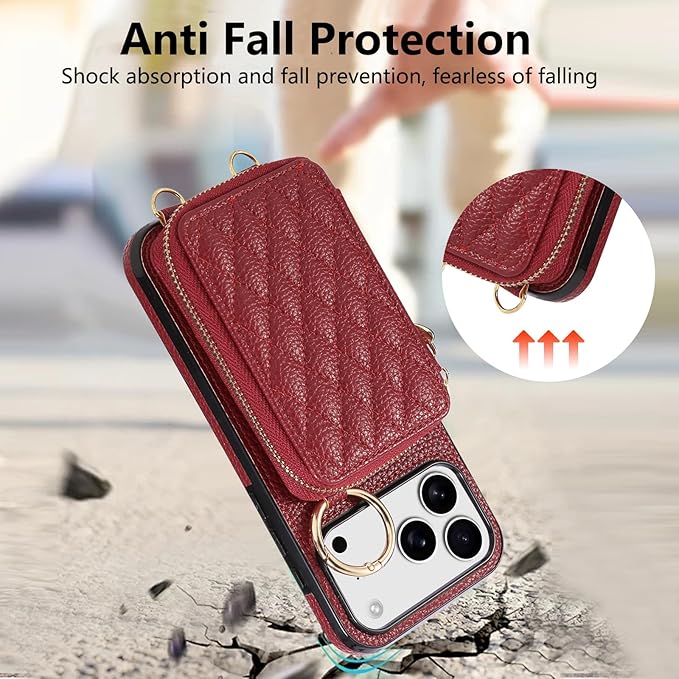 用の iphone 17 pro Max ケース 手帳型 ショルダー スマホケース いphone17promax ケース 手帳型 おしゃれ 背面カード収納 小銭入れ 携帯カバー iphone17promax ケース斜めがけ 肩掛け ストラップ付き 調節可能 アイフォン17pro Max 手帳型ケース 可愛い 女性 人気 リング付き 財布型 携帯ケース(レッド)