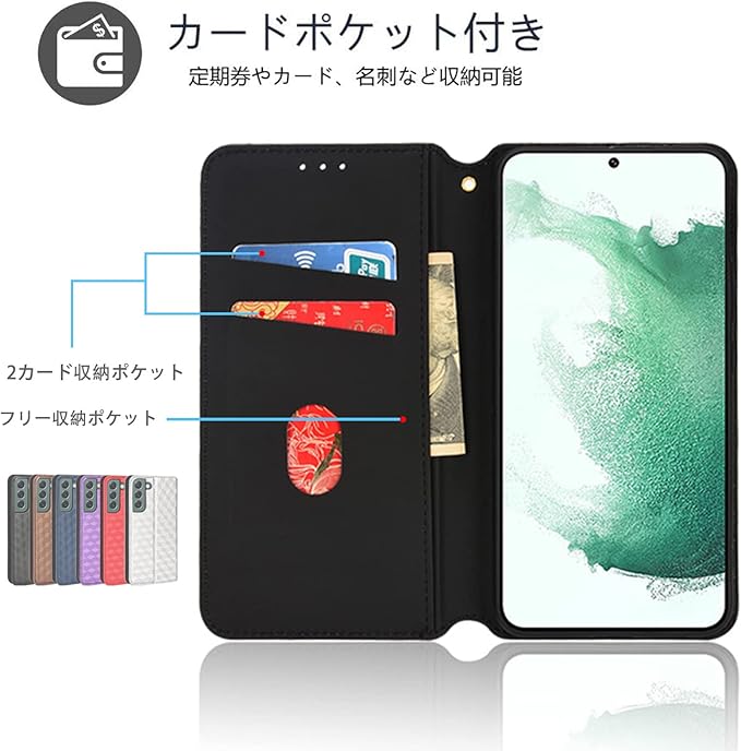 【手帳型ならではの機能が満載】クレジットカード、交通カード、キャッシュなどを収納できると共に、スマホのレンズ及び液晶を全面的に保護できます。商品の内部ケースは柔軟のTPU材料を使用している為、スマホ本体を保護することができます。各機種にピッタリの専門設計なので、ケース装着時も、カメラ、電源ボタン、音量ボタン、イヤホンジャック、コネクタ等がそのまま使用可能です。また、スタンドモードにもなる為、好きな角度で動画鑑賞や読書などを楽しめます。