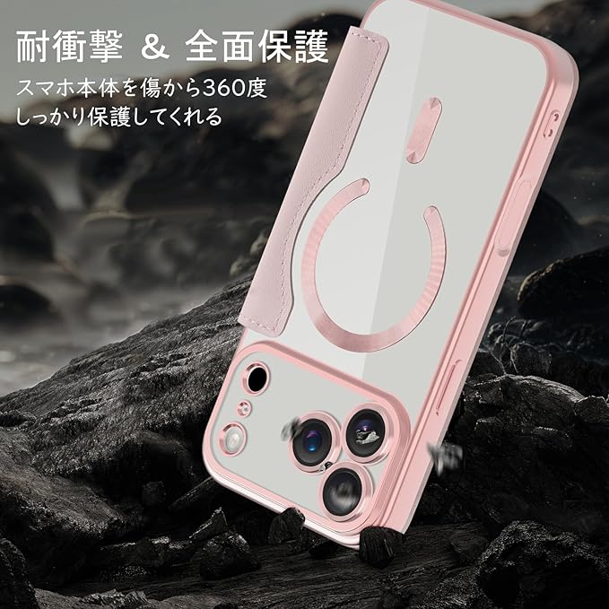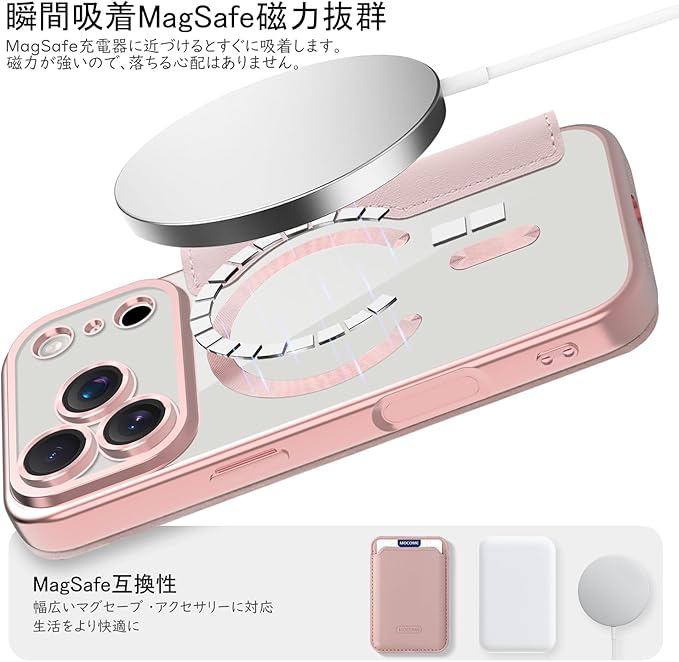 「MagSafe対応専用・強力な磁力吸着!」携帯をもっと便利に使いたいのですが、MagSafeに影響しないケースはありますか?これを試してみて! ケース内部は38個強力なマグネットを搭載、超吸着能力でいくら振っても落ちない。ワイヤレス充電だけでなく、Magsafe対応スタンド&リングも対応、リラックスした生活に重宝する。