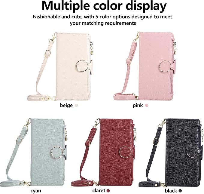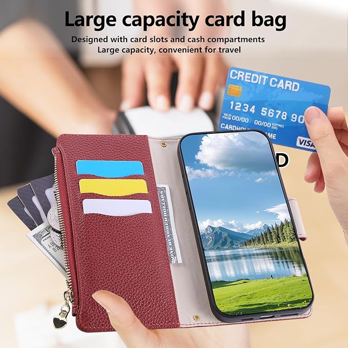 に適合するiPhone 17 Pro Max ケース 手帳型 いPhone 17 Pro Maxスマホケース 財布一体型 全面保護 ケース アイフォン17プロマックス 携帯カバー クロスボディハンギング 小銭入れ【 ストラップ 長+短 2本】アイフォン17プロマックス ケース 手帳型 スタンド機能 カード収納 ジッパー財布型カバー 手首/肩掛けストラップ付(赤)
