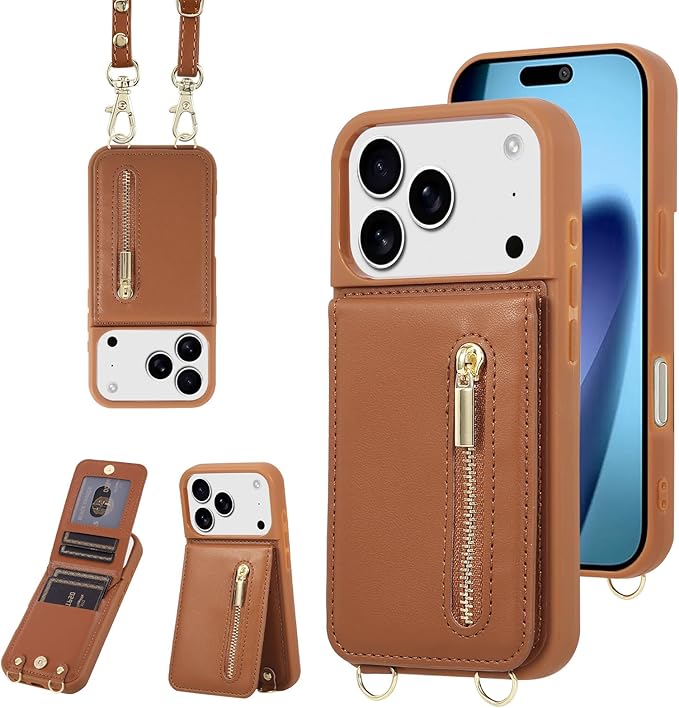 Jcxtrombulous対応 iPhone 17 Pro Max ケース 背面カード マグネットICカード収納 調節可能なストラップ付き 耐衝撃な 携帯ケース アイホン17 プロマックス スマホ PUレザー スタンド RFIDブロッキング技術ケース 6.9inchブラウン