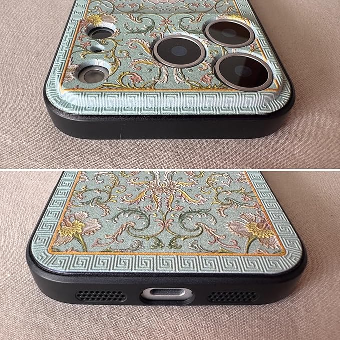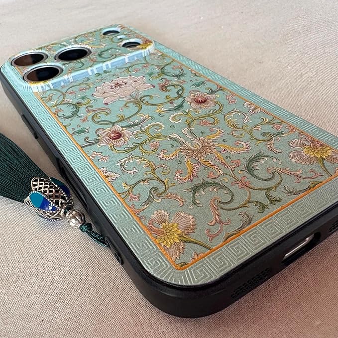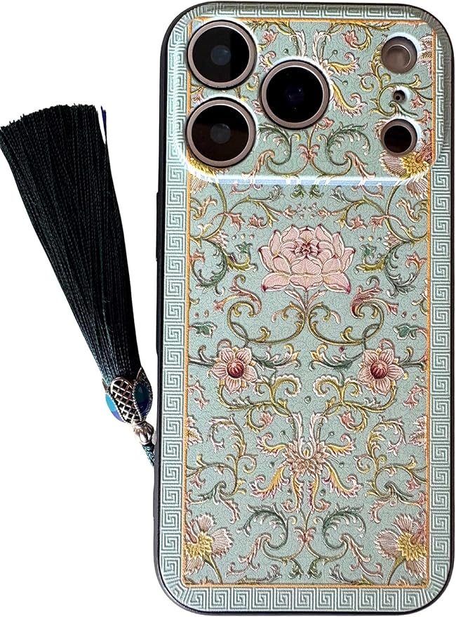 KOLO【蓮華】iPhone対応 17 Pro Max スマホケース シノワズリ 中国風 中華風 はす ハス ロータス カバー(黄緑) iPhone17 Pro Max