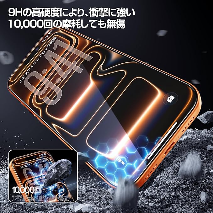 【20KG耐衝撃・飛散防止】SGS米軍落下保護規格の認証を取得しました!二次強化硬度と7層の複合構造で、超高温Na+/k+イオン交換技術など、多くの画期的な加工技術を採用し、20KG耐衝撃性を実現します。10000回の極限耐摩耗性テストで、小刀や鍵などの鋭利な物品でも擦り傷が付きません!