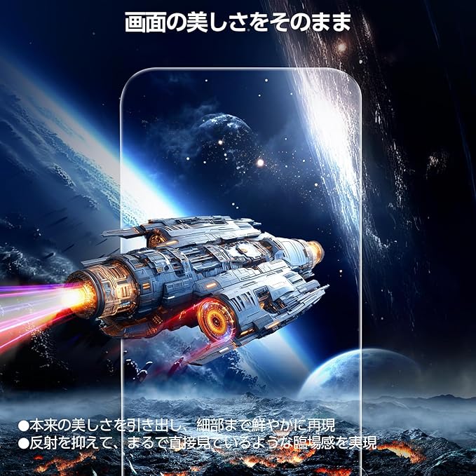 特徴 光沢、ガイドボックス付き、自動除塵、貼り付け簡単、強化ガラス、20kg耐衝撃、飛散防止、落下保護、縁なし