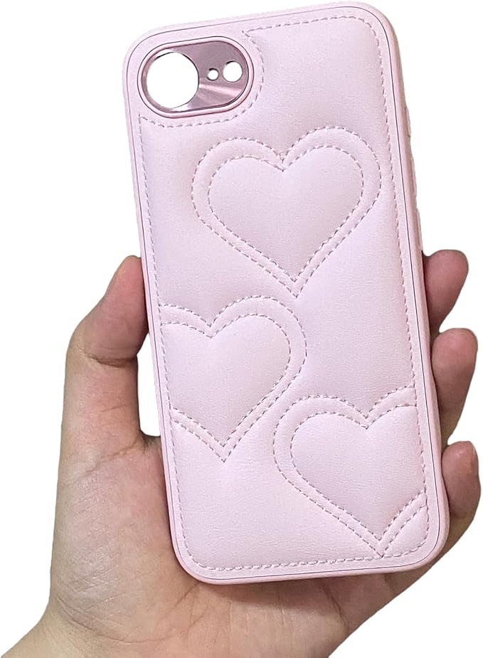 スマホ ケース 韓流 対応 iPhone 17 Pro Max ケース シンプル 可愛い ハート柄 手つくり アイフォン おしゃれ 耐衝撃 カメラ保護 背面 カバー (ピンク, For iP 17 Pro Max)