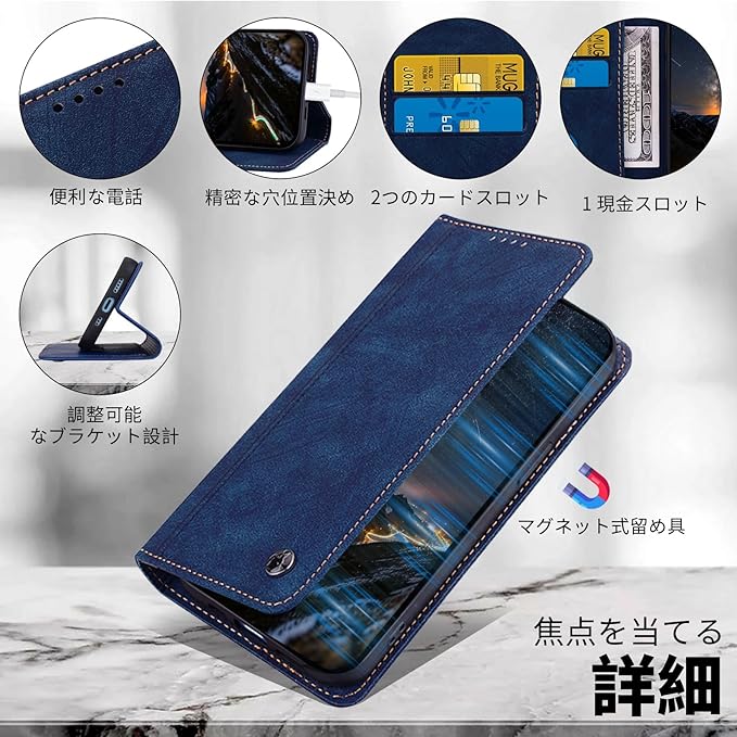 1.素材:高品質なPUレザーで作られており、耐久性があります。またはTPU素材を採用しており、脱着も簡単で、スマホ本体をしっかりと保護します。 2.マグネット内蔵:ケースにはマグネットが内蔵されており、フタの開け閉めがスムーズでストレスを感じさせません。外出先や仕事中、家の中など、さまざまなシーンで快適にご使用いただけます。3.スピーカーホール:スピーカーホール付きで蓋を閉じたままで通話が可能です。