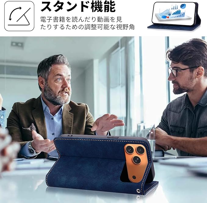 マグネット型&スタンド機能:このアイiphone17プロマックス ケース 用レザーケースには、マグネットが内蔵されているので、ベルトがなくてもフタがピタッと閉まります。ストレスなく簡単に開閉でき、使いやすいです。さらに、スタンド機能として立てかけるだけで動画視聴も快適に、自由にお好みの角度調整できる。