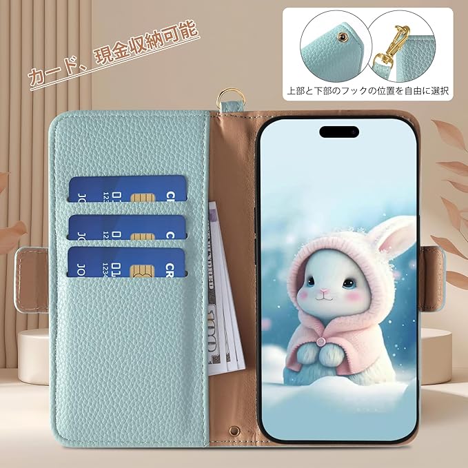 対応 iPhone 17 Pro Max ケース 手帳型 かわいいウサギ おしゃれ いphone17promax ケース 手帳型 スタンド機能 カード収納 アイフォン17プロマックス 携帯ケース 全面保護 衝撃吸収 耐久性 マグネット式 iphone 17promax スマホケース iphone17プロマックス カバー 仕上がり ご家族やご友人へのプレゼントにも,ブルー