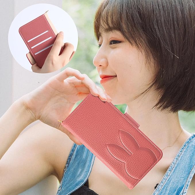 【YIMASE】 対応 iPhone 17 Pro Max ケース 手帳型 かわいいウサギ いphone17promax ケース 手帳型 iPhone17プロマックスケース 全面保護 ブラケット機能 iPhone 17promax 携帯カバー iPhone17promax カバー耐衝撃 財布型 おしゃれ 可愛い カード収納機能,レッド