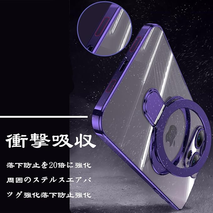 【リング付き】リングはケースにしっかり固定されていて、リングは180度回転し、縦置き、横置きどんな角度でも固定できで、個人の快適なハンズフリー使用と多用途性を実現します。