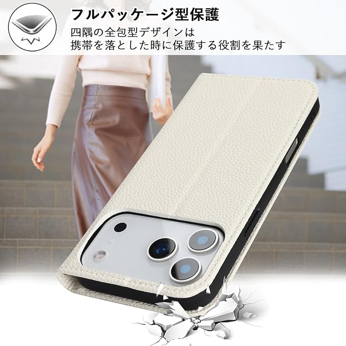 【Hamany】 対応 iphone 17 pro max ケース 手帳型 ショルダー アイホン17プロマックスケース スマホストラップ カード収納 財布型 スタンド機能 スマホケース いphone 17promax マグネット式 女性 肩がけ 首掛け 斜め掛け ショルダーバッグ 携帯カバー -アンバー ホワイト