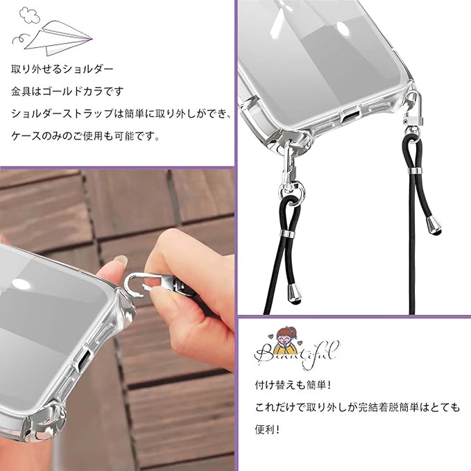 【ストラップホール付き、便利と安心】シリコンケースには首から下げられるようにショルダーストラップが付いており、まるでアクセサリーのようにスマホを着用できます。落下防止はもちろん、紛失防止にも役立ちます。 特に旅行や、小さなお子様がいるお母さんにおすすめ、手荷物がある時にスマホを持ち続ける必要がなくなりますし、スマホを落としたり無くしたりといった心配もなくなります、バッグから携帯を取り出す手間がはぶけます。ネックストラップは使うシーンに合わせて簡単に取り外すことができます。作業、旅行、出張、ショピング、散歩、コンサート、パーティーに最適です。手を離しても、携帯電話を携帯できます。