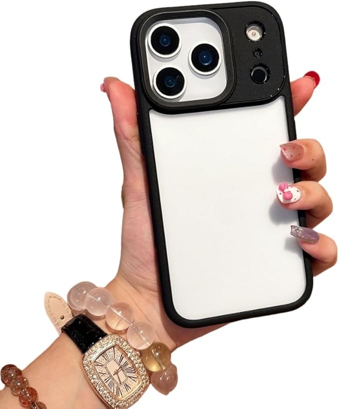 iPhone 17 Pro Max 対応 ケース クリア 透明 アイフォン17ProMax 用 カバー 2色 配色 薄型 可愛い レディース 背面カバー ハードケース 嵌め込み,ブラック