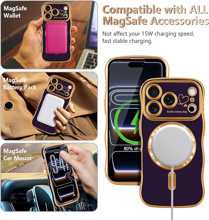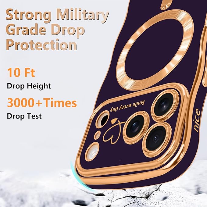 LCHULLE 用の iPhone 17 Pro Max ケース MagSafe 対応 ウェーブ 滑り止め おしゃれ 可愛い マグネットカバー 韓国 耐衝撃 指紋防止 傷つけ防止 軽量 マグセーフ 対応 アイフォン 17 Pro Max 用 スマホケース (ディープパープル)