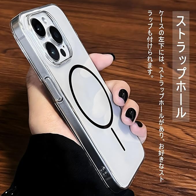 【MagSafe対応+ストラップホール】MagSafe対応のマグネットリング付き、MagSafe充電器やMagSafe対応アクセサリーの装着が可能、機能性とデザイン性を両立iPhoneケースです。ケース下部には、ストラップホールがあり、お好きなストラップも付けられます。
