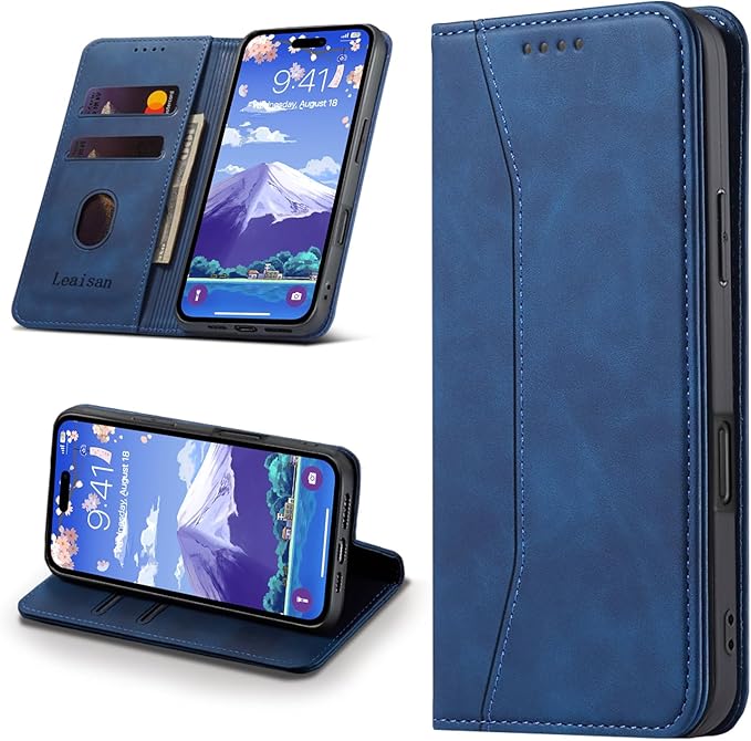 Leaisan iPhone 17 Pro Max ケース 手帳型 スマホケース レザー マグネット iPhone17ProMax専用 手帳型 カード収納 い スタンド機能 全面保護 携帯カバー アイフォン17 Pro Max用 手帳ケース - ブルー