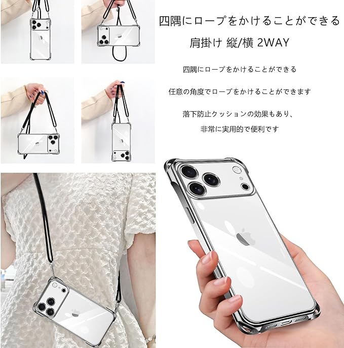 iPhone 17 pro max/アイフォン17 pro max専用にデザイン。お使いの携帯電話のすべての機能、ポート、ボタンに簡単にアクセスできます。ショルダーストラップ付きのケースは、有線および無線の充電をサポートしています。横に肩に掛けることができ、ストラップはいつでも調整および取り外しできます。このアクセサリーはファッションだけでなく、通常のストラップよりも快適で実用的です。 作業、旅行、出張、ショピング、散歩、コンサート、パーティーに最適です。手を離しても、携帯電話を携帯できます。