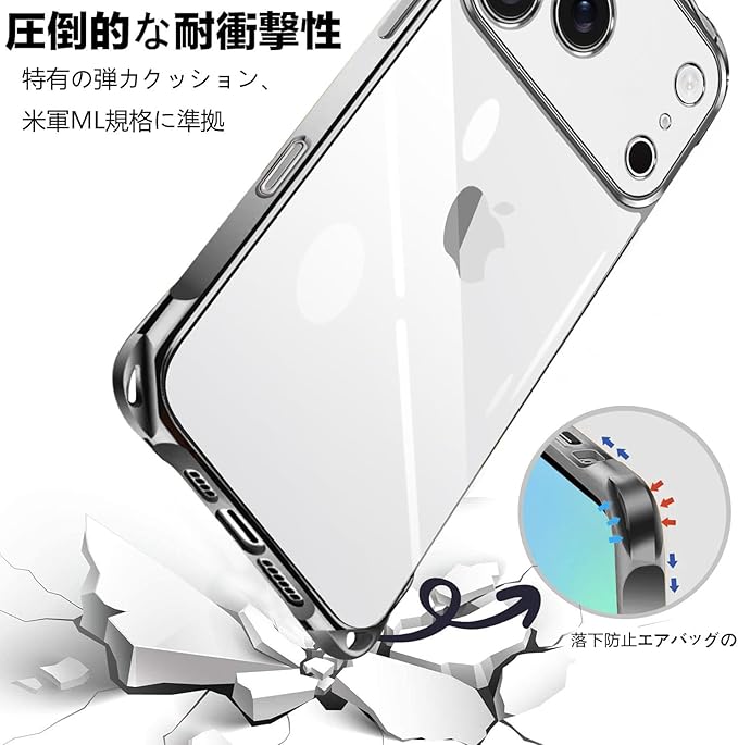 【カメラレンズ保護 & ディスプレイ保護】カメラはオールインクルーシブ保護設計を採用しており、精密な突起が大切なカメラを保護します。レンズ保護フィルムを取り付ける必要はありません。4つのバンパーには、背面に突起があります。iPhone 17 pro max/アイフォン17 pro max のカメラレンズより1.5ミリ高い立ち上がって、有効的に擦り傷を防ぎます。液晶画面より約1.5mm高く設計され地面と接触するのを防止、外部との擦り傷を避けるし、精確なホールデザインは携帯にもジャストフィツトしていて、すべてのポートとボタンも押しやすくなります。