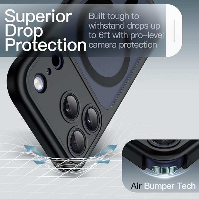 JETech iPhone 17 Pro 6.3インチ用 マグネットケース MagSafeに対応 耐衝撃薄型 スマホカバー 内蔵カメラコントロールボタン マット半透明バック (ブラック)