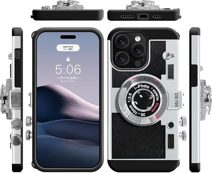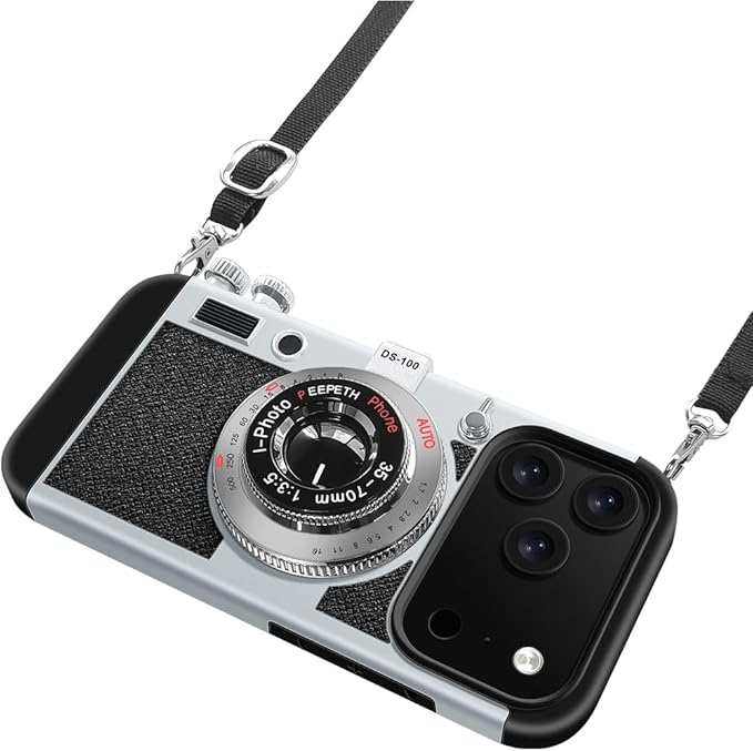 UnnFiko For iPhone 17 Pro Max ケース カメラデザイン おしゃれ 17 Pro Max レトロ 3D ハードケース おもしろい 携帯保護カバー 6.9インチ アイフォン 17 Pro Max ネックストラップ付き (iPhone 17 Pro Max, ブラック)