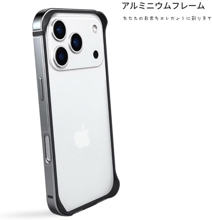 SUGOIDAN 携帯ケース iPhone 17 Pro Max 用 バンパー ケース アルミ アイフォン17promax アルミケース 軽量 カメラレンズ保護 シリコン 二層構造 柔軟 耐衝撃 アイホン17プロマックス カバー ストラップホール付き(シルバー)
