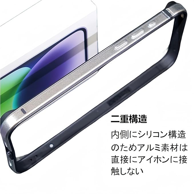 シリコン素材とアルミの組み合わせで二重構造となっており、内側にシリコン構造のためアルミ素材は直接にアイホンに接触しない、または衝撃の吸収に強い、素晴らしいデザインで高級感も溢れています。