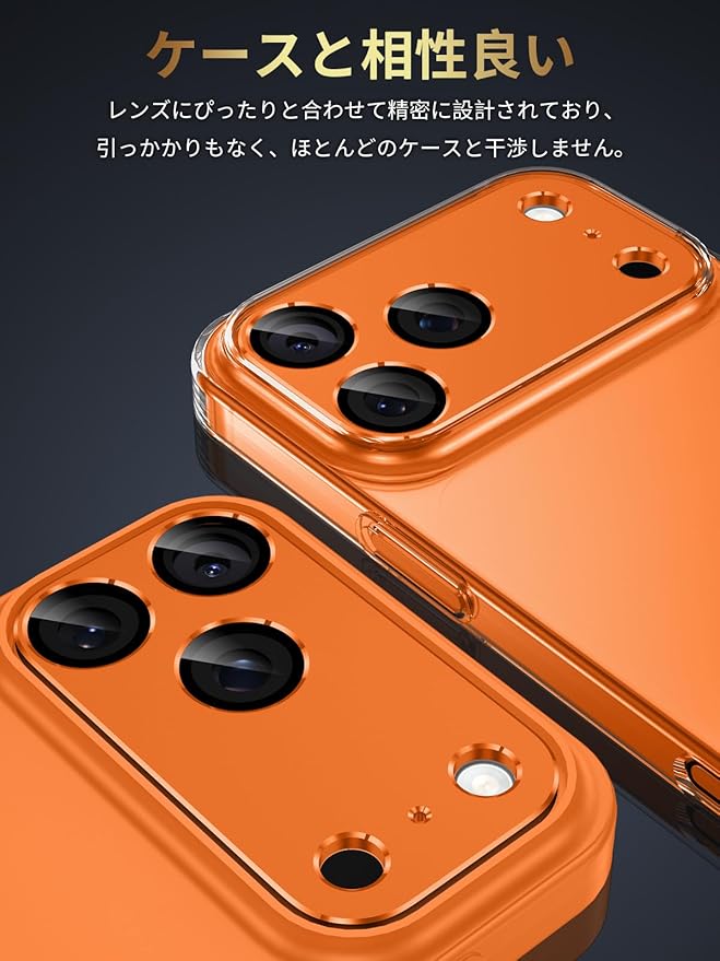 【スマホケースと干渉なし】iPhone 17 Pro Max のカメラレンズのサイズにぴったり合わせた1:1の精密設計で、引っかかりがなく、ほとんどのスマホケースと干渉しません。フィルムはスマホ本体のカラーに自然に溶け込み、元の美しさをそのままお楽しみいただけます。✳✳✳ご購入から6か月間のアフターサービス付き、万が一、初期不良や不具合にも対応いたしますので、安心してご使用いただけます。