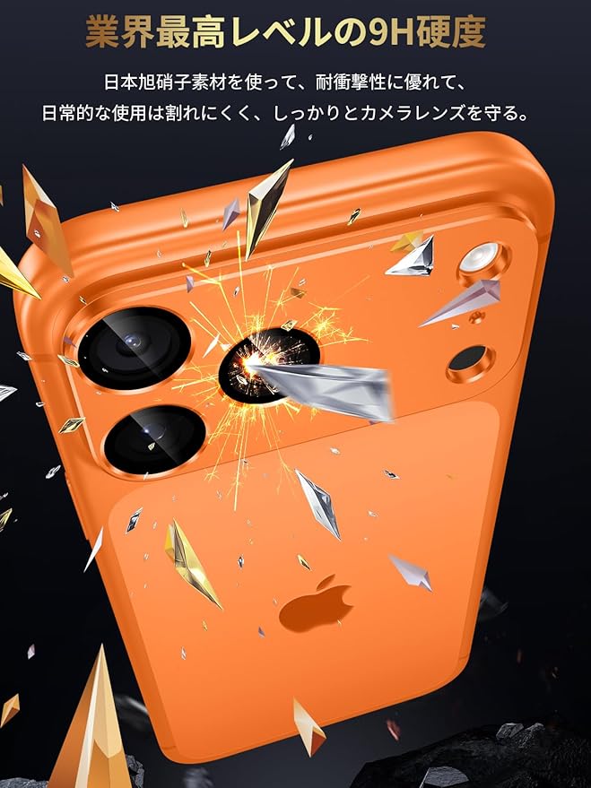 カメラフィルム iPhone 17 Pro Max用 カメラ保護 一体型 全面保護 黒縁取り アルミ合金 アイフォン17プロマックス レンズカバー 耐衝撃 9H強化ガラス いphone17 Pro Max専用カメラカバー 超高透過率 オレンジ
