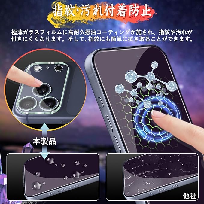 【最高硬度9H・日本旭硝子製】日本製素材旭硝子製を採用しております、高品質な素材で衝撃を緩和し画面の破損を最低限まで抑えます。高品質製品の製作プロセスに厳しく基づき、ガラス420 高温強化時間6時間、め七つのステップを経てスマホに完璧的にフィットした製品を製造されます。9H硬度で、ハードコーティング技術により、衝撃を緩和し画面の破損を最低限まで抑え、すり傷や指紋からもスクリーンをしっかりと保護します。本体の端までフルカバーし液晶画面をしかっりと保護します。縁にかかる衝撃が軽滅しガラスフィルムの耐久性にも向上させます!