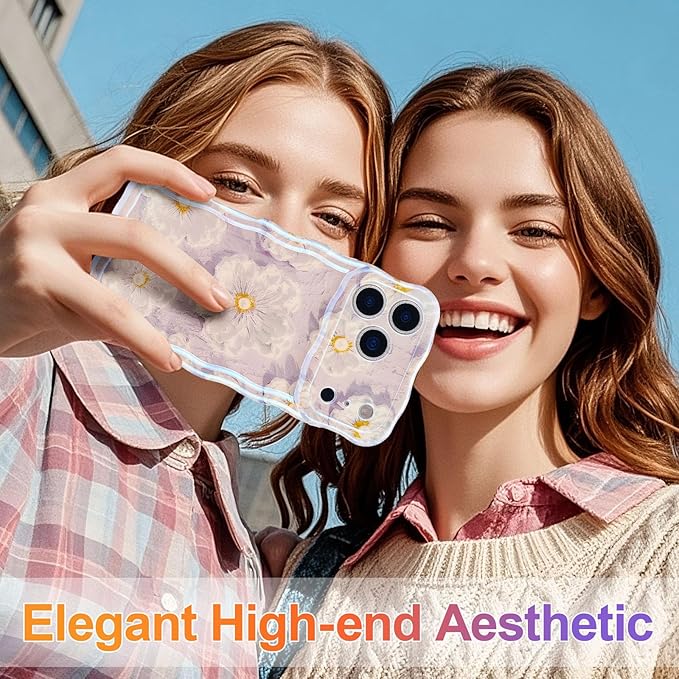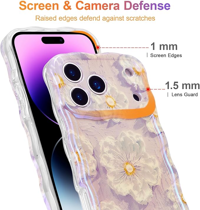 EYZUTAK ケース 対応 iPhone 17 Pro Max 用の 保護ケース柔軟なTPUカバー おしゃれ 可愛い 油絵の 花柄 薄型 軽量 カールボーダー携帯ケース 耐衝撃 スマホケース - ライトパープル