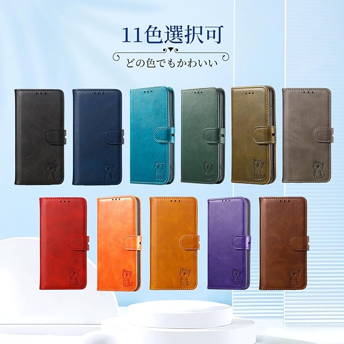 【素材:高級PUレザーとアップグレードしたTPUケース】本製品は厳選されたPUレザーを採用し、エンボスの猫柄が特徴です。レザー自体が水分をはずみ、汚れやシミが付きにくい仕様です。肌触りのような感じで、手汗が出てきても滑りにくいです。インナーケースは弾力あるTPU製で、ケースの一番右したのところにストラップホールもあり、お好きな小物とかお付けられます。柔らかく耐衝撃が強くなり、着脱もスムーズで、不意な落下からスマホをしっかりお守れます。