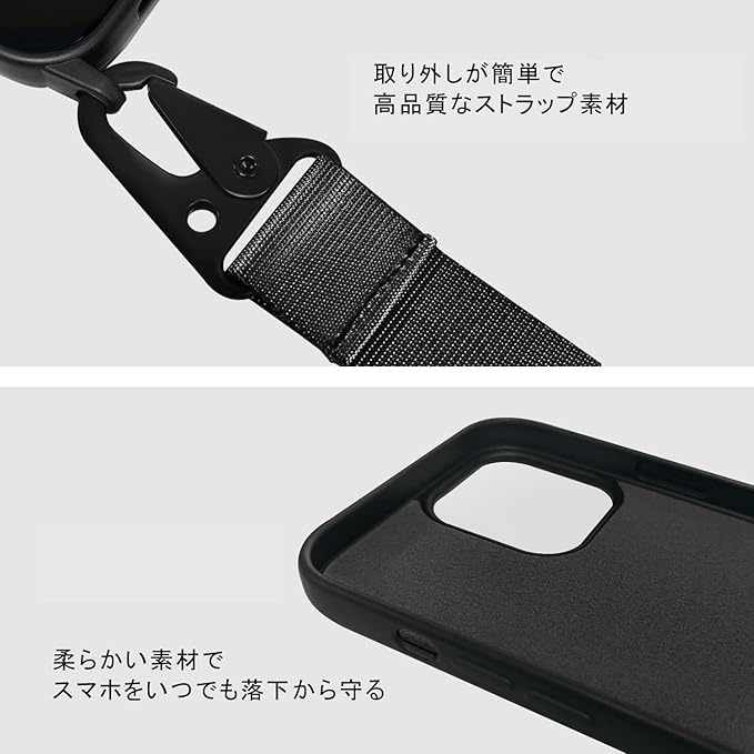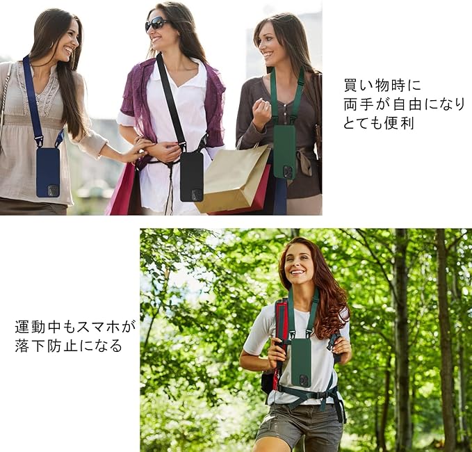 ネックストラップ付きのスマホを首掛け・肩掛け・斜掛けしてハンズフリーできるだけでなく、外でご愛用のスマホの紛失を防ぐことができます。外出、普段使用にとても便利です。